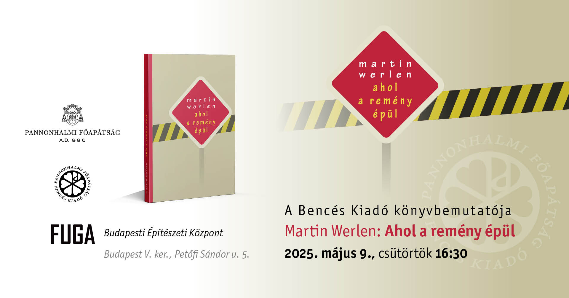 2025. május 8-án, csütörtökön 16:30 órakor mutatjuk be a FUGA – Budapesti Építészeti Központban (Budapest V. ker., Petőfi Sándor u. 5.) Martin Werlen emeritus apát, bencés szerzetes legújabb kötetét Ahol a remény épül. Zavaró és reményteli építkezések az egyházban címmel.